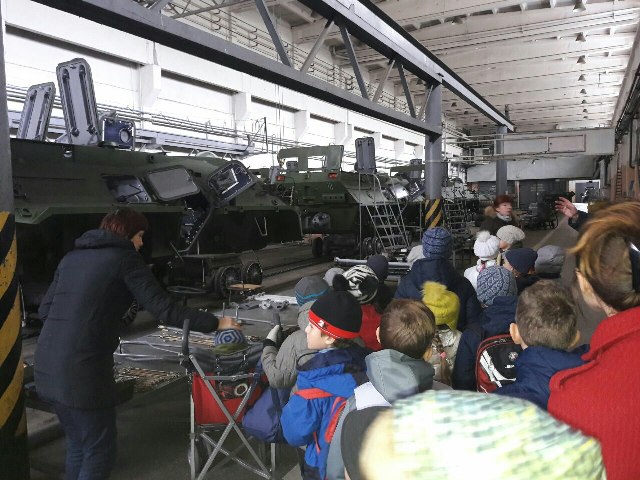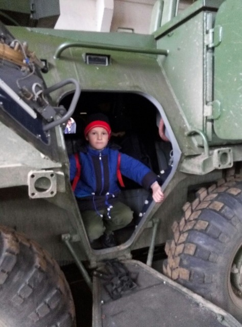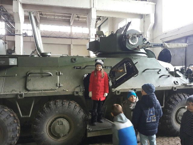 Перед екскурсією діти класу побували у віртуальній подорожі про українських вояків «Від скіфів до кіборгів»,і свідомо слухали екскурсовода і розглядали танки, бронетранспортери, складові майбутньої бронетехніки. У дітей виникло багато запитань, на які дорослі давали вичерпні відповіді. Найбільший захват був від того, що дозволили побувати всередині бронетранспортера.