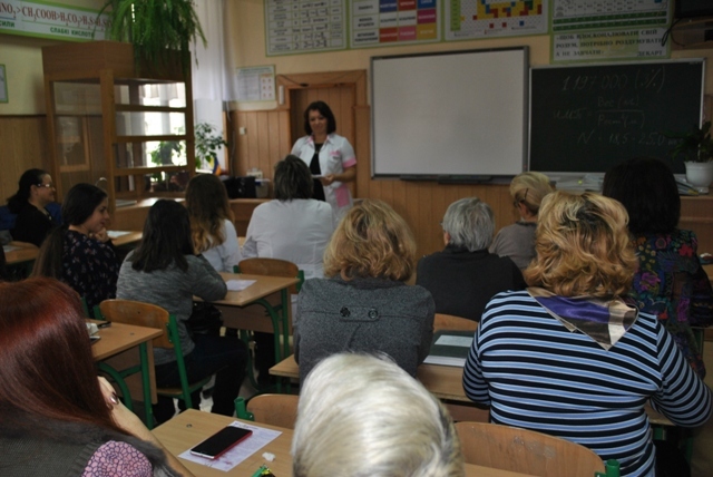 Зустріч була присвячена Міжнародному дню боротьби з цукровим діабетом, який щорічно відзначається 14 листопада. Всі вчителі мали можливість зробити експрес-аналіз на зміст глюкози в крові. Після лекційного виступу лікарів, вчителі отримати індивідуальні консультації спеціалістів. Особлива вдячність матусі учнів гімназії – Дудинській Олені Георгіївні – комерційному директору клініки «Здорова Сім’я», яка підготувала цю зустріч.