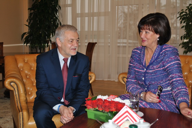 Цього року в Консульстві нас зустріла Пані Агнєшка Рончка (консул з питань полонії) і була приємно вражена привітанням учнів 10-А класу – Гурської Катерини та Шадурського Олександра. А в Посольстві Республіки Польща наша делегація на чолі з директором гімназії №48 - Маріанною Іванівною Босенко мала честь зустрітися з Надзвичайним і Повноважним Послом Яном Пєклом.