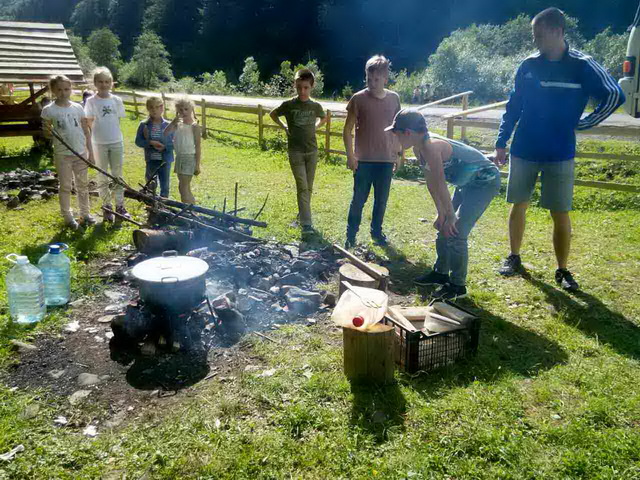 Повертаємося з екскурсії на озеро Синевир. Від нашого табору це 180 км на автобусі, а потім 1200 м пішого підйому на гору до надзвичайно мальовничого озера. А обід влаштували прямо на привалі перед дорогою назад. Багаття, чудовий настрій, природа, яка надихає - що ще треба гарним друзям для відчуття повноти життя! Діти щасливі - а це для нас головне!!