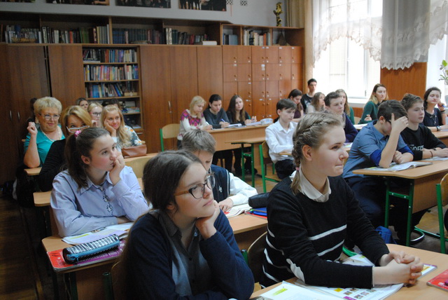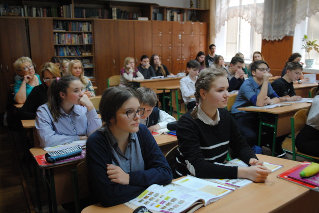 В кінці уроку студентам запропонували долучитися до діалогу з гімназистами 8-А класу, які з задоволенням розмовляли зі своїми майбутніми учителями.