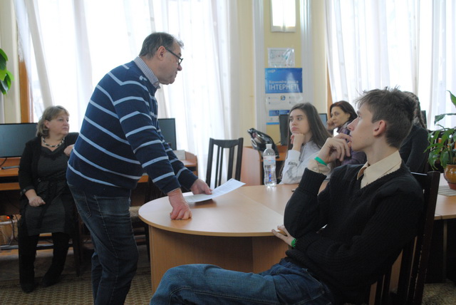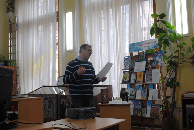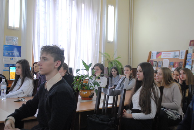 13 лютого 2018 року гімназисти 10-А класу на чолі з вчителем зарубіжної літератури Чистяк О.І. відвідали бібліотеку ім. Євгена Плужника, де відбулася зустріч з відомим українським письменником, поетом-перекладачем Олександром Балабко. Під час інтерактивного спілкування здобувачі освіти мали змогу обговорити книгу О. Балабка «Олександр Вертинський - нащадок М. Гоголя» та насолодитися романсами на вірші О. Вертинського.