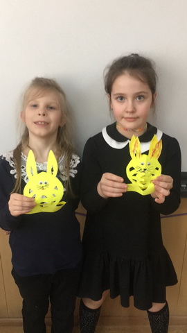 Учні 3-А класу готуються до зустрічі Великодня. Діти виготовили зайців у техніці «витинанки» й прикрасили яйце у техніці «декупаж».