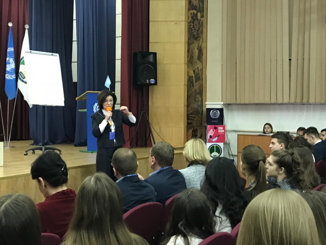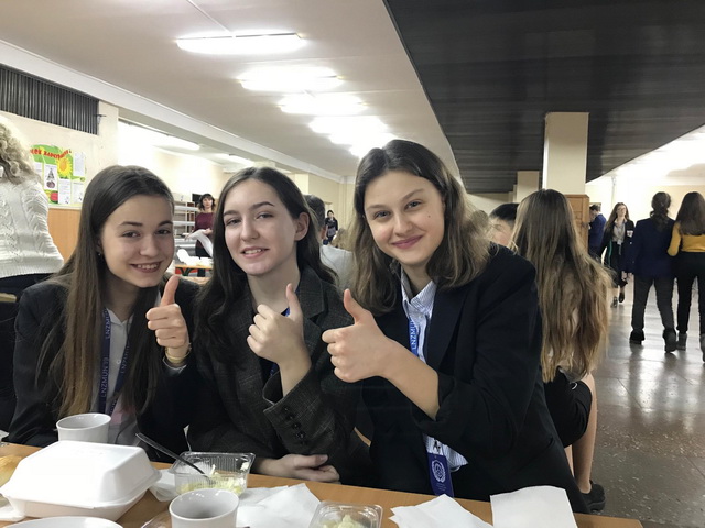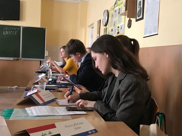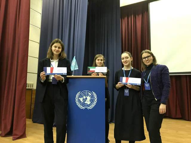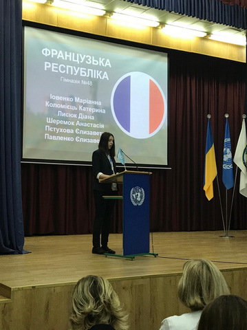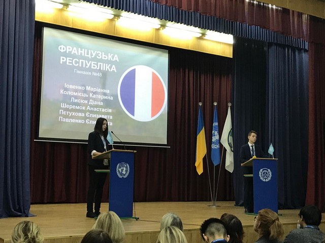 Наші делегати у складі: посла – Іовенко Маріанни (Рада з прав людини, Французька Республіка, 11-А клас), делегатів Коломієць Катерини (Рада безпеки, Держава Кувейт, 11-Б клас), Шеремок Анастасії (Всесвітня Продовольча Програма, Французька Республіка, 10-Б клас), Пєтухової Єлизавети (Комітет ООН з використання космічного простору в мирних цілях, Французька Республіка, 10-Б клас), Лисюк Діани (Економічна та Соціальна Рада, Французька Республіка, 10-Б клас) та Павленко Єлизавети (Дитячий фонд ООН (ЮНІСЕФ), Французька Республіка, 9-А клас) показали високий рівень підготовки та довели, що наші гімназисти гідні бути хорошими дипломатами.