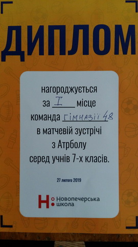 зірна команда 7-Б класу на чолі з учителем фізичної культури Адрусяком О.Г. брала участь у матчевій зустрічі з Артболу серед команд 7-х класів на базі Новопечерської школи. Вітаємо з перемогою!