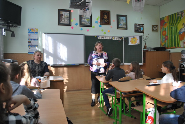 В рамка весняного FESTу «В обіймах весни» у гімназії №48 20 березня 2019 року для гімназистів 3-х класів бібліотекарем ЦРБ імені Є. Плужника Вавіловою В.О. була проведена інтерактивна гра «Історія вулиці Прорізної». Діти ознайомилися з історією пам’ятників та будинків рідної Прорізної та із задоволенням відповідали на питання вікторини. Було цікаво!
