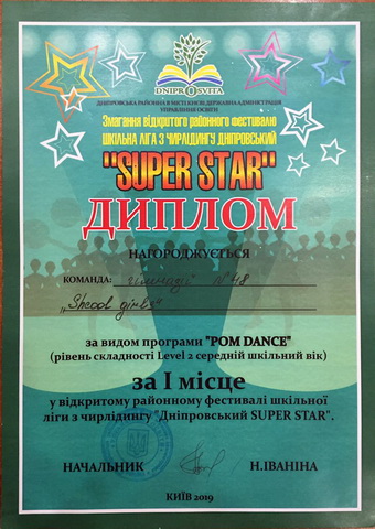 14-го березня у Києві пройшов фестиваль Шкільної ліги з чирлідингу Дніпровський «Super star» на базі СШ №125. Змагалося майже 200 школярів із різних районів міста!