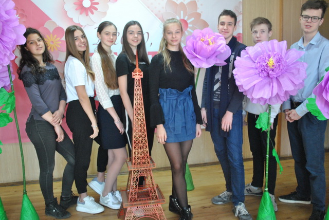 гімназисти 9-Б класу на чолі з вчителем французької мови Крамар І.Б.