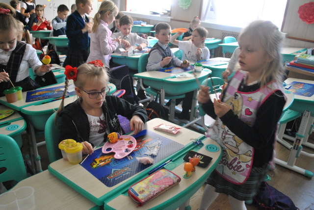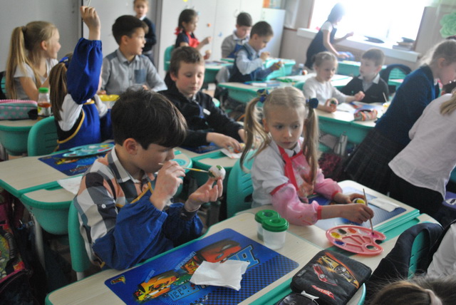 для гімназистів 2-Б класу, класовод Петровська І.М., учителем трудового навчання Бєльчиковою Г.Д. був проведений майстер-клас з розпису Великодніх яєць.