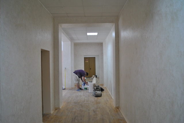 Повністю завершено зняття пожежно-небезпечного покриття біля центральних сходів гімназії та заміни його на сучасне естетичне оформлення стін.