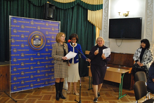 Маріанна Іванівна вручила нагрудний знак «Знання, душу, серце - дітям» вказаним вчителям гімназії під час святкування професійного свята. Подякою Міністерства освіти і науки України нагороджено Власову Ірину Олександрівну- вчителя математики гімназії №48, - за сумлінну та бездоганну працю, плідну педагогічну діяльність, високі досягнення у навчанні та вихованні учнівської молоді. Почесною грамотою Київської мвської організації профспілки працівників освіти і науки України нагороджено Чумак Тетяну Леонідівну - голову первинної профспілкової організації, завідувача бібліотекою гімназії №48, - за самовіддане служіння профспілковій справі, активну роботу, спрямовану на захист трудових, соціально-економічних прав та інтересів освітян, зміцнення і збереження профспілкової єдності та з нагоди Дня працівників освіти.