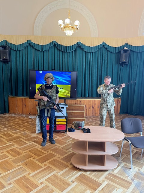 25 травня 2023 року інструкторами відділення рекрутингу та комплектування Шевченківського районного у місті Києві територіального центру комплектування та соціальної підтримки були проведені відкриті профорієнтаційні уроки «Захисту України» для учнів 9-10 класів гімназії №48.