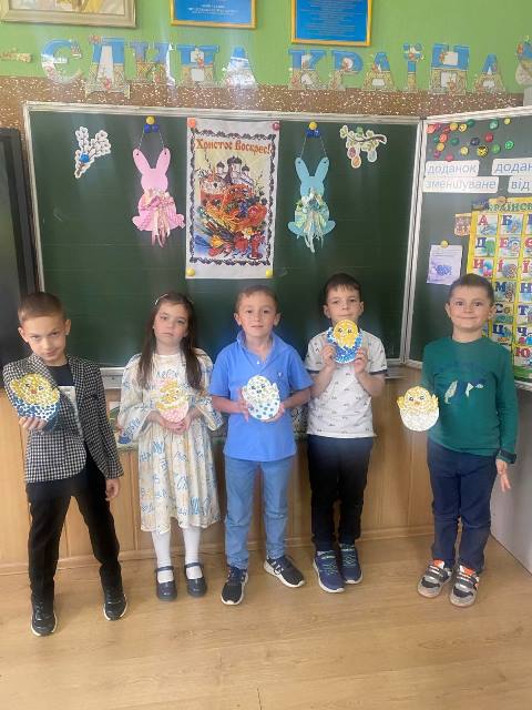 Учні 1-А класу гімназії №48 старанно підготувалися до Великодня: розфарбували яєчка з математичним завданням, зробили листівки для рідних, прикрасили пластиліном курчаток, а також власноруч розписали писанки в гончарній майстерні «Яр».