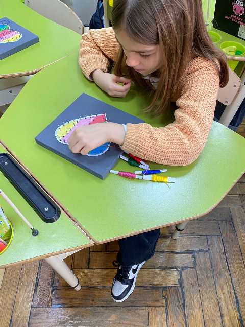 - мистецтво створення тривимірних картин з цвяхів і ниток, під час якого діти підготували сердечка до Дня усіх закоханих.