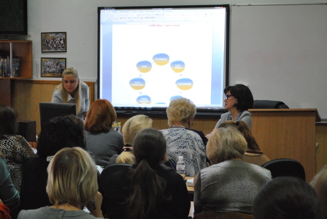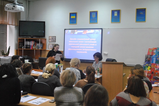 Досвідом роботи, практичними завданнями та власними наробками поділилися заступник директора гімназії з навчально- виховної роботи Товкачевська О.А. та вчителі англійської, польської,французької мов: Майданова Т.О., Пухната Л.А., Комарова Г.М., Собол М.А. та Дудка І.П. Було цікаво.
