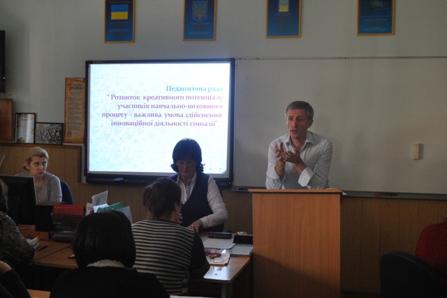 28 березня 2014 року в гімназії пройшло засідання педагогічної ради «Розвиток креативного потенціалу учасників навчально-виховного процесу - важлива умова здійснення інноваційної діяльності гімназії».