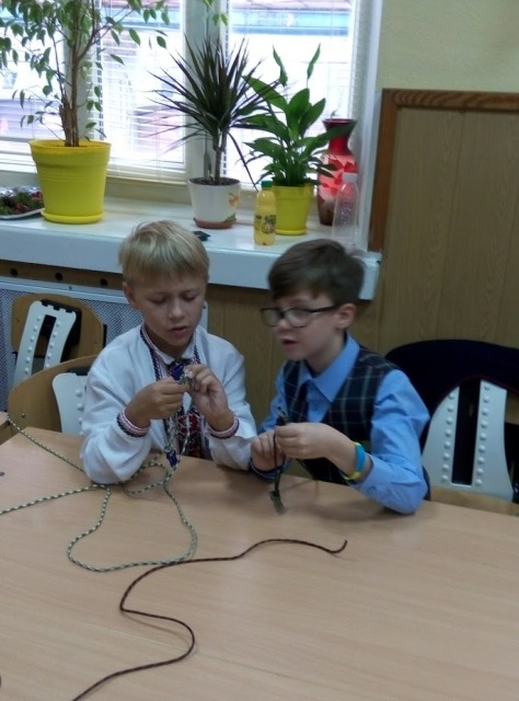 Сергій був журналістом Нового каналу, телеведучим, але почуття відповідальності за долю Батьківщини покликало його відмовитись від улюбленої професії і поїхати на схід воювати за незалежність нашої держави. По батьківському щиро і дохідливо воїн розповів дітям, якими вони повинні зростати, які книжки читати, обов’язково займатися спортом, які людські якості в собі виховувати. Не обійшлося і без подарунків. Діти отримали у подарунок браслети, а хлопці - справжні військові шеврони. Ще до 2-Б класу завітали пластуни, які провели майстер-клас по плетінню з паракордового шнура «Браслета виживання». Це та річ, яка дуже у багатьох випадках спасає бійців на фронті. Готові браслети були передані Сергію Кутракову і дуже скоро, можливо, спасуть не одне життя або просто допоможуть у скрутний момент.