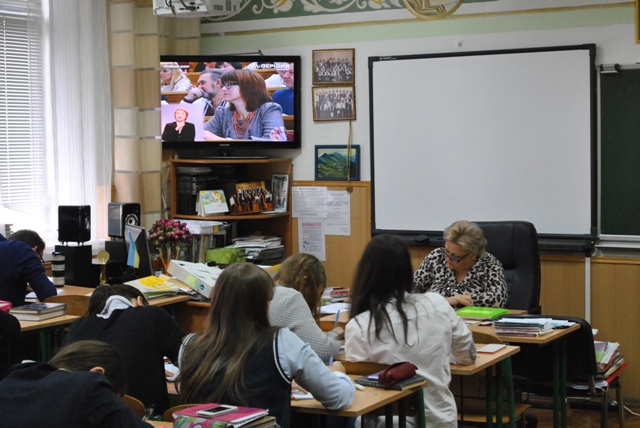 До Дня української писемності та мови 11 листопада 2015 року учні 10-Б класу на чолі з вчителем української мови та літератури Терентьєвою Т.М. зустрілися з українським письменником Анатолієм Самойленком. Учні з цікавістю слухали вірші та долучилися до цікавої розмови - презентації книги «Негаснуча зоря Тараса» на базі бібліотеки ім. Є. Плужника.