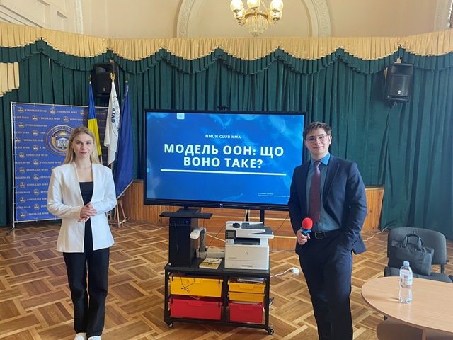 05 квітня 2024 року студенти Києво-Могилянської академії провели ознайомчу лекцію "Що таке Модель ООН" для учнів 8-10 класів гімназії №48. Учні дізналися про особливості проведення науково-практичних конференцій у форматі моделей ООН. Гімназистів запросили до участі у грі на базі Києво-Могилянської академії, яка відбудеться 20-21 квітня 2024 року.