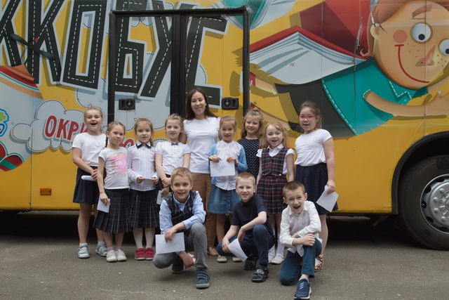 Це місце, де першокласники поринають у світ пізнавальної та цікавої літератури. Діти виконували завдання та квести на розвиток читання. Окрім цього методисти «Книжкобус» Яна та Катерина провели цікаві уроки в самому автобусі та у класах.