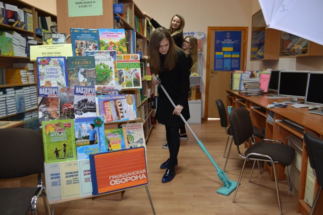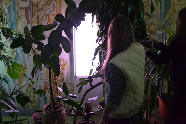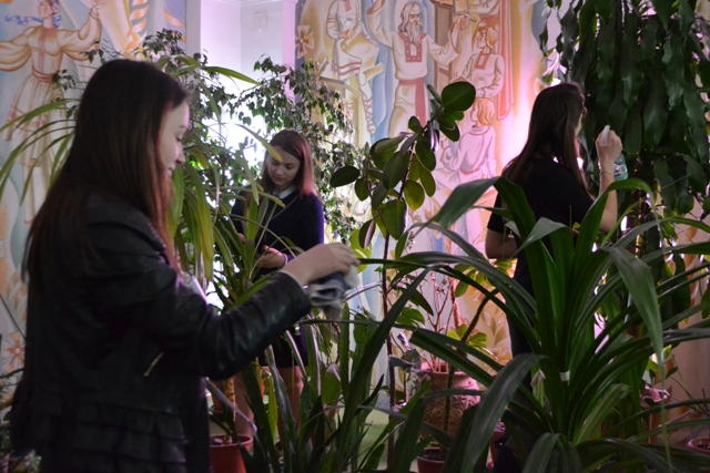 в гімназії№48 відбуласть санітарна обробка приміщень та прибирання зимового саду гімназії старшокласниками.