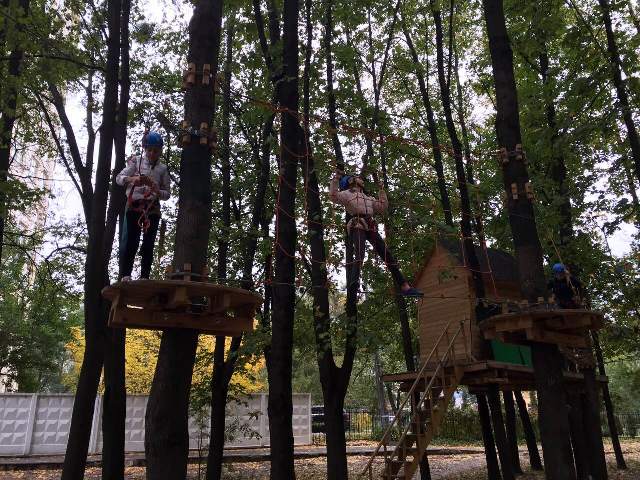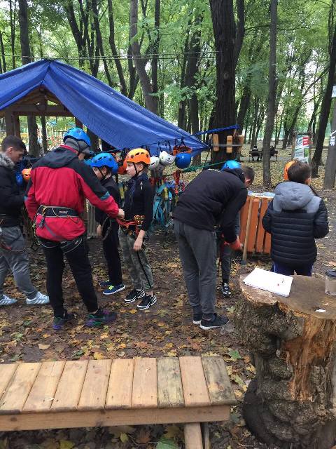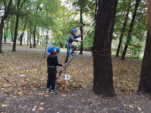 збірні команди учнів 5-х класів на чолі з вчителем фізичної культури – Адрусяком О.Г. брали участь у змаганнях у мотузковому парку