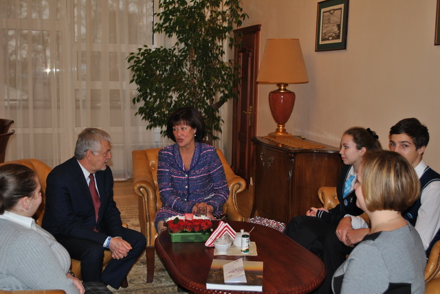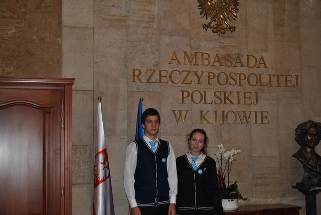 Цього року в Консульстві нас зустріла Пані Агнєшка Рончка (консул з питань полонії) і була приємно вражена привітанням учнів 10-А класу – Гурської Катерини та Шадурського Олександра. А в Посольстві Республіки Польща наша делегація на чолі з директором гімназії №48 - Маріанною Іванівною Босенко мала честь зустрітися з Надзвичайним і Повноважним Послом Яном Пєклом.