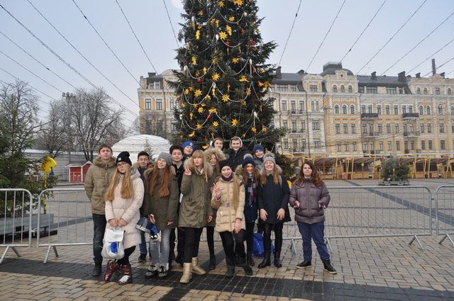 23 грудня 2016 року учні 8-А та 11-А класу на чолі з класними керівниками Червінською Н.М. та Тарасевич С.Ю поринули в святкову атмосферу, відвідавши головну ялинку на Софійській площі. Всі із задоволенням брали участь у різноманітних іграх та конкурсах, які проходили на Новорічному ярмарку. Чудово, що нарешті розпочалися зимові канікули!