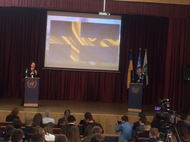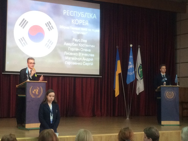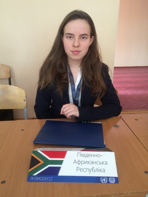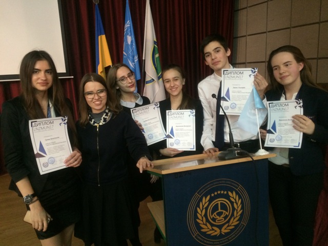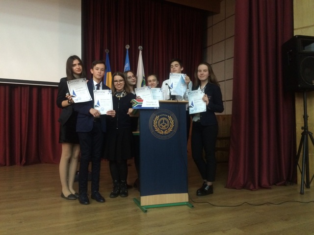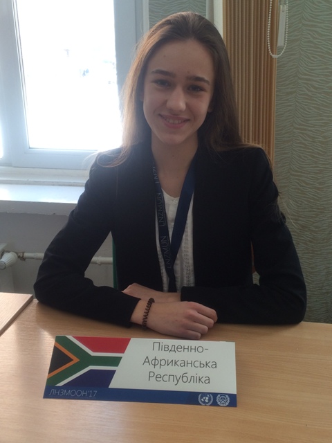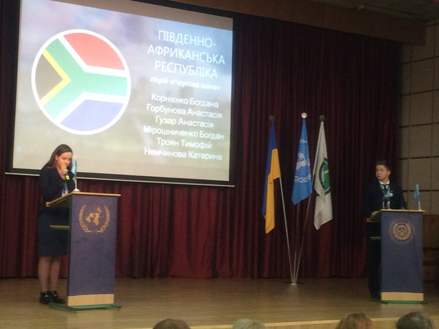 Наші учні у складі делегації Південно-Африканської Республіки: посла – Корнієнко Богдани та делегатів Немчинової Катерини, Горбунової Анастасії, Мірошниченко Богдана, Гузар Анастасії та Трояна Тимофія показали високий рівень підготовки, широкий світогляд та довели, що наші гімназисти гідні бути хорошими дипломатами.