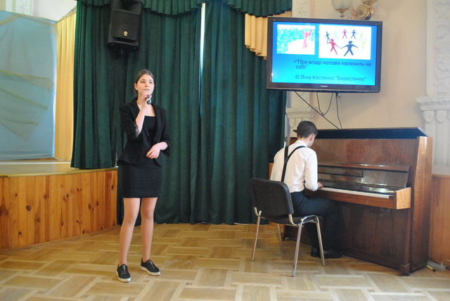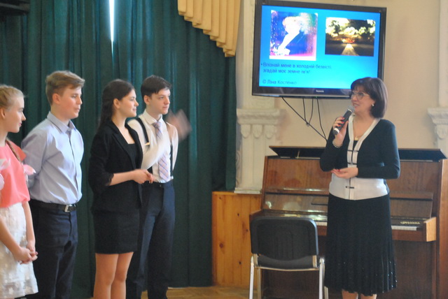 У межах концерту пролунали безсмерті твори, якими уже майже століття люди, читаючі вірші, закохуються, страждають, радіють і сумують, вразила авторська пісня Жмендак Тетяни та Казімі Сонії на слова Ліни Костенко «Між іншим». Діти читали вірші геніальної поетеси, переклади англійською та польською мовами. Глядачі мали змогу насолодитися вальсом «Осінній день», контемпом «І все на світі треба пережити» та піснею «Вечірнє сонце». У залі панувала легка, невимушена атмосфера радості і тепла.