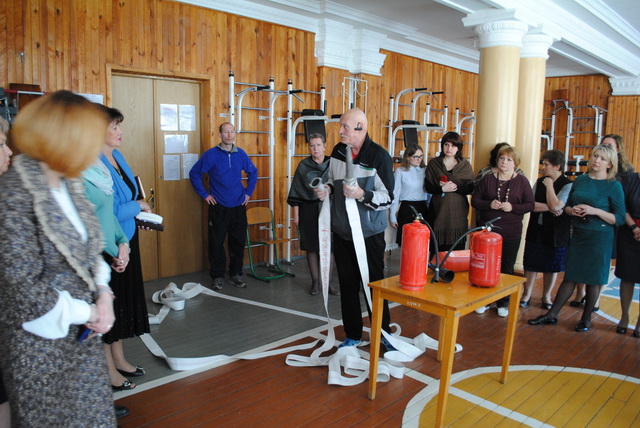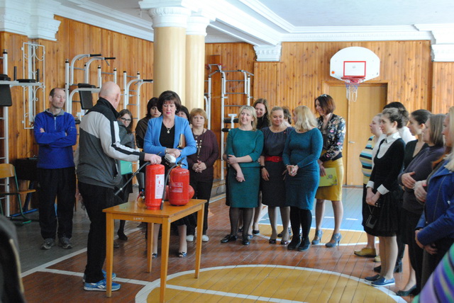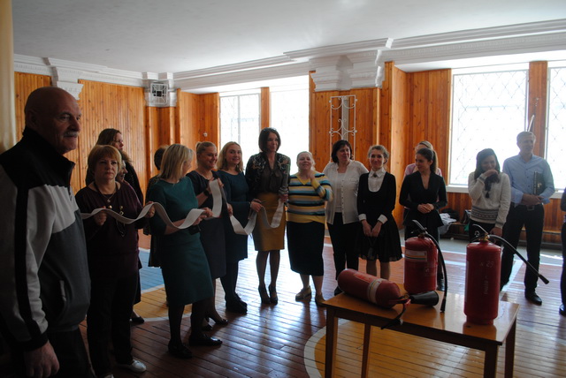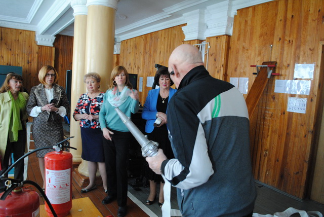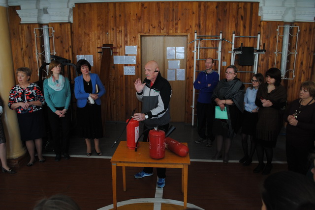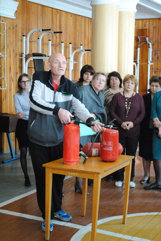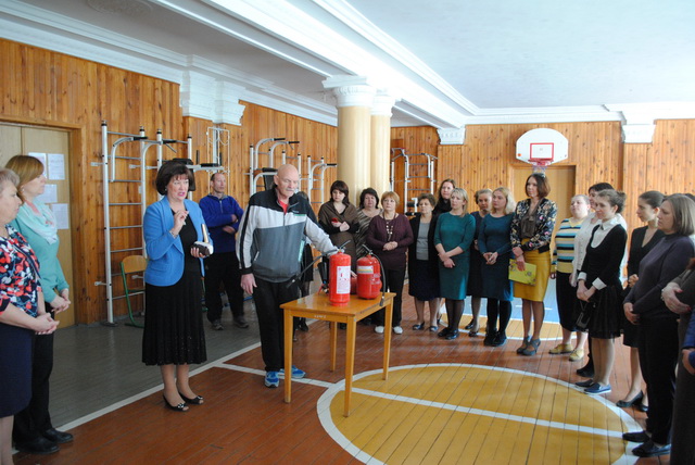 Учительський колектив на практиці відпрацював вміння користуватися вогнегасниками.