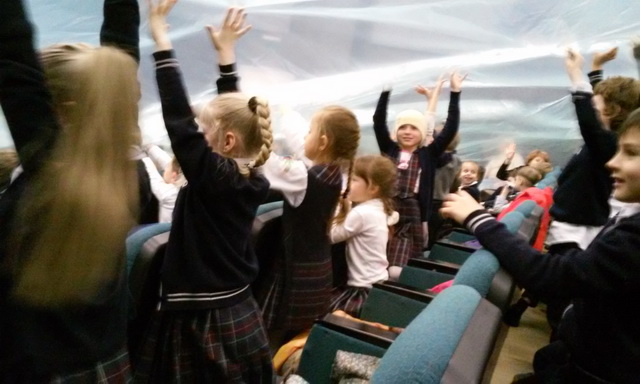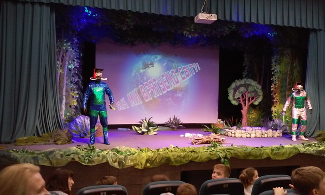 13 квітня 2017 року учні 1-А, 1-Б, 2-А класів на чолі з класоводами Палійчук Л.М., Петровою І.В., Горбаньовою І.В. відвідали театр «Особистості». З великим задоволенням подивились виставу «Як ми врятуємо світ». Важливим моментом є те, що перегляд дійства співпадає з періодом проведення Днів Землі. Вистава доволі яскраво та емоційно відображає проблеми, що існують на нашій планеті. Діти були вражені виступом акторів, відчували себе співрозмовниками, активно реагуючи на дії героїв. Шановний Петро Петрович Мага! Ми щиро вдячні Вам – автору вистави!