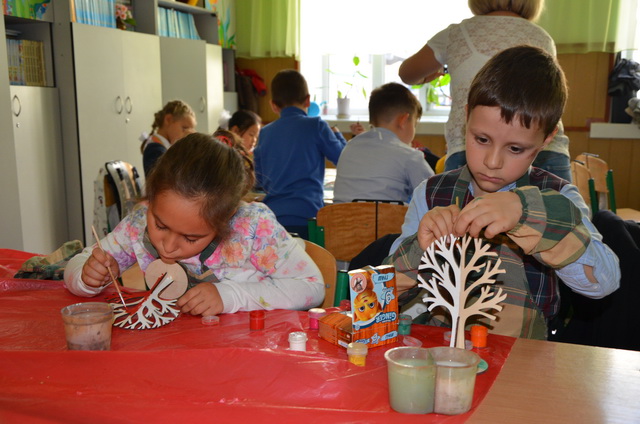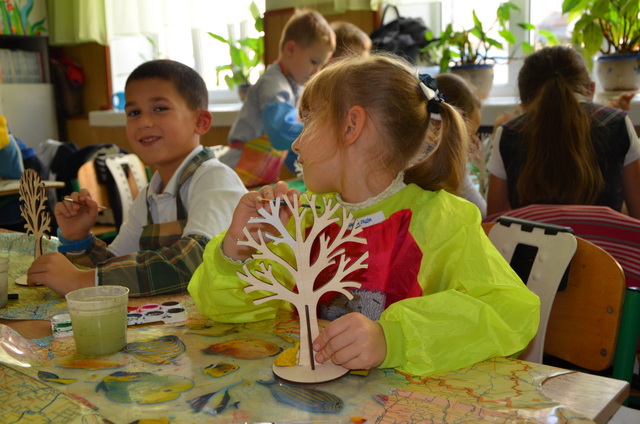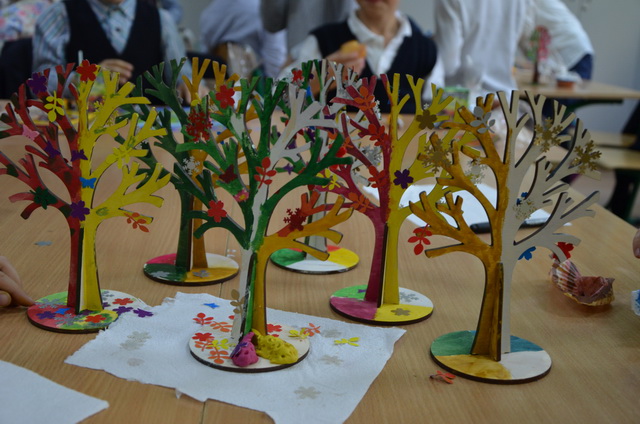 В рамках реалізації проекту «Однодумці: батьки, учні, вчителі» батьки 2-А класу гімназії №48 разом з класоводом Палійчук Л.М. провели майстер-клас «Дерево-роду», завданням якого було розфарбувати дерево відповідно порам року, прикрасити його та відмітити дні народження своєї сім’ї. Також класна родина 2-А привітали літніх іменниників з днем народження.
