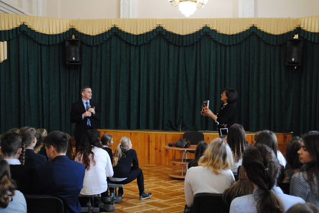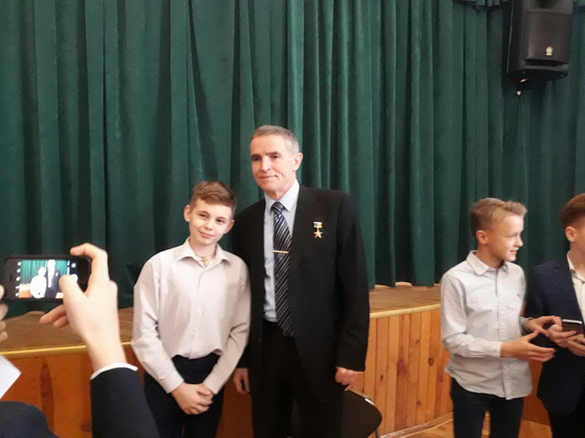 Приємною несподіванкою став незвичайний початок ІІ чверті першого семестру 06 листопада 2017 року в актовій залі гімназії № 48 відбулась зустріч з видатною постаттю - Каденюком Леонідом Костянтиновичем – першим астронавтом незалежної України, народним депутатом четвертого скликання, Народним послом України , Героєм України. Леонід Костянтинович подарував інформаційному центру гімназії власну книгу «Леонід Каденюк – місія космос», під час неймовірно цікавого діалогу учні мали можливість не тільки дізнатися про секрети здобуття унікальної професії космонавта, а й отримати автограф.