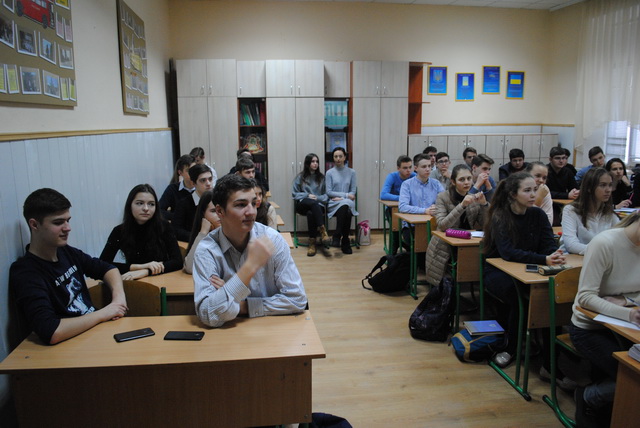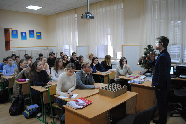 в рамках профорієнтації відбулась зустріч учнів 11 класів гімназії №48 з директором освітнього центру Association/Прага/ Родимом Кноблохол, який презентував здобувачам освіти програми підготовки до вступу в вузи Чехії.