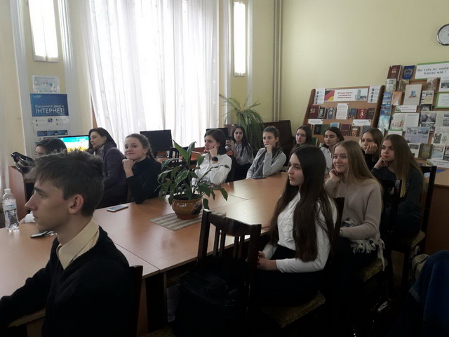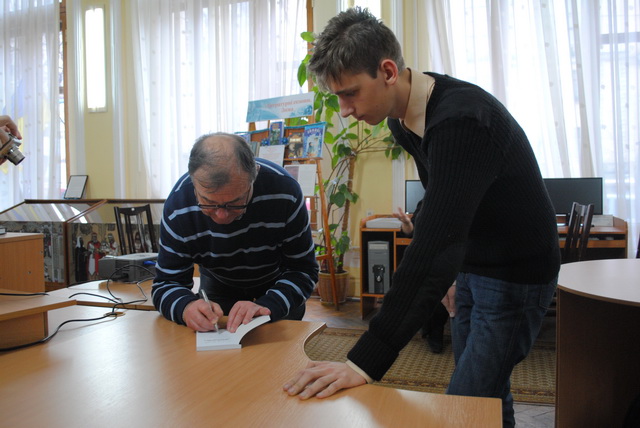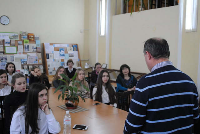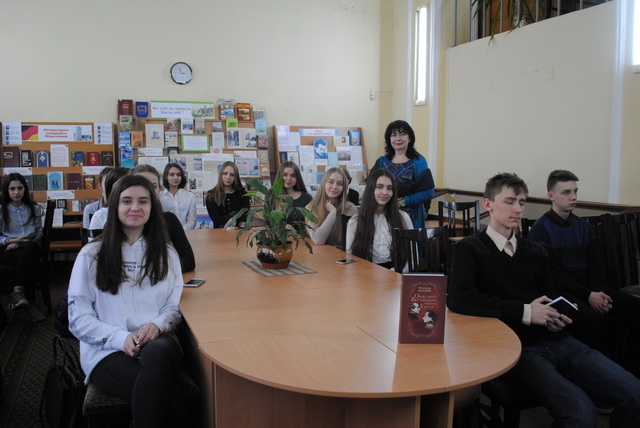 13 лютого 2018 року гімназисти 10-А класу на чолі з вчителем зарубіжної літератури Чистяк О.І. відвідали бібліотеку ім. Євгена Плужника, де відбулася зустріч з відомим українським письменником, поетом-перекладачем Олександром Балабко. Під час інтерактивного спілкування здобувачі освіти мали змогу обговорити книгу О. Балабка «Олександр Вертинський - нащадок М. Гоголя» та насолодитися романсами на вірші О. Вертинського.