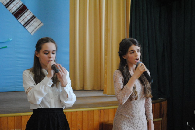 Атмосферу любові передали батьки гімназистів; Пахомова Ольга та Рубльова Валентина, які співали пісню «Чорнобривці».