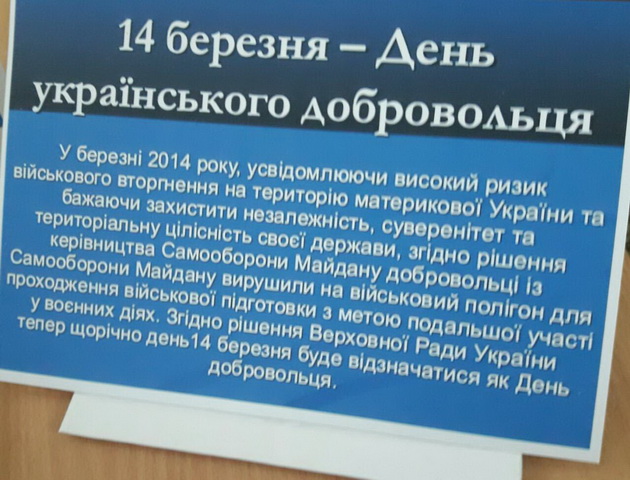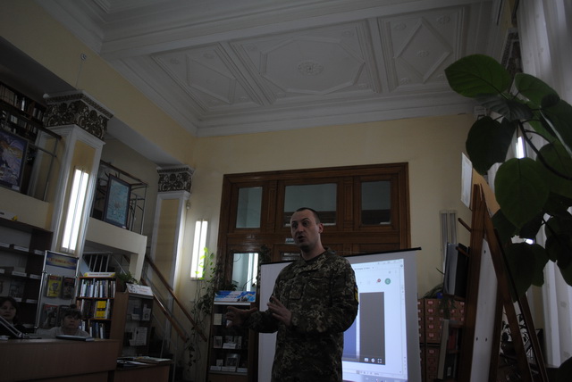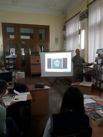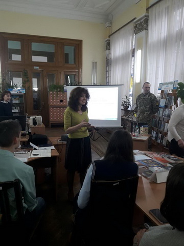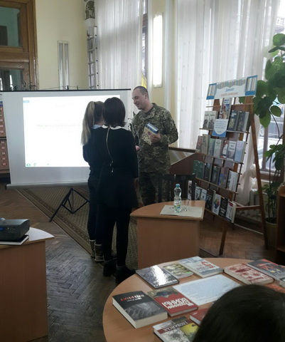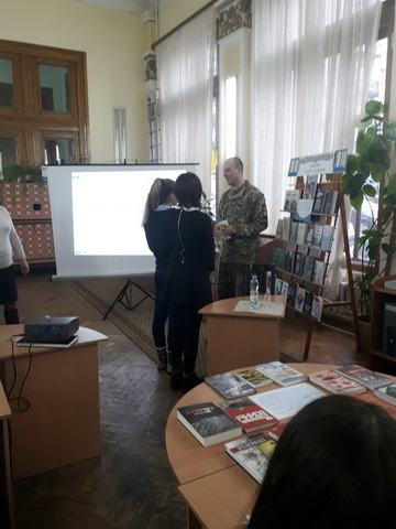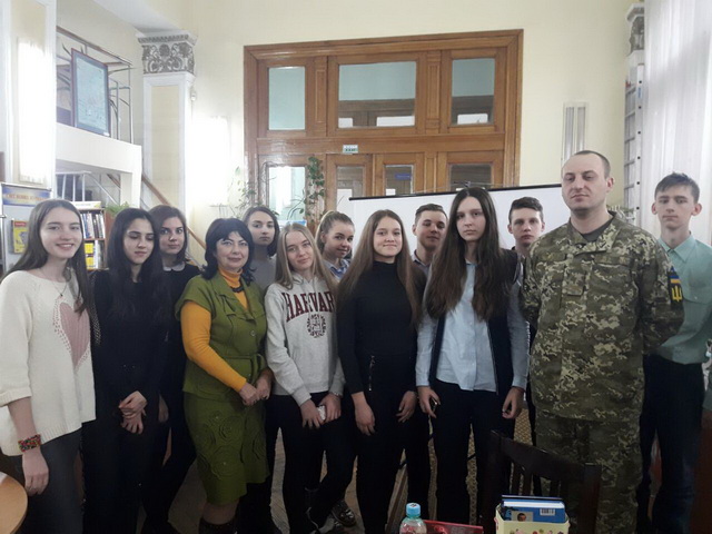 12 березня 2018 року до Дня українського добровольця на базі бібліотеки імені Євгена Плужника відбулась цікава зустріч гімназистів 10-А класу «Пам’ятка добровольця волонтера» з героєм АТО, добровольцем 12 мотострілкової бригади Павлом Сергійовичем Зонем.