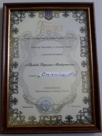 24 квітня 2018 року до Дня солідарності молоді відбулась дружня зустріч збірних команд ЗЗСО 57 та гімназії 48 здобувачів освіти 9-10 класів під час правової інтерактивної гри" Правові вершини майбутнього ". Співробітники Головного територіального управління юстиції відмітили якісну підготовку та активну участь гімназистів у правовій вікторині. Було цікаво!