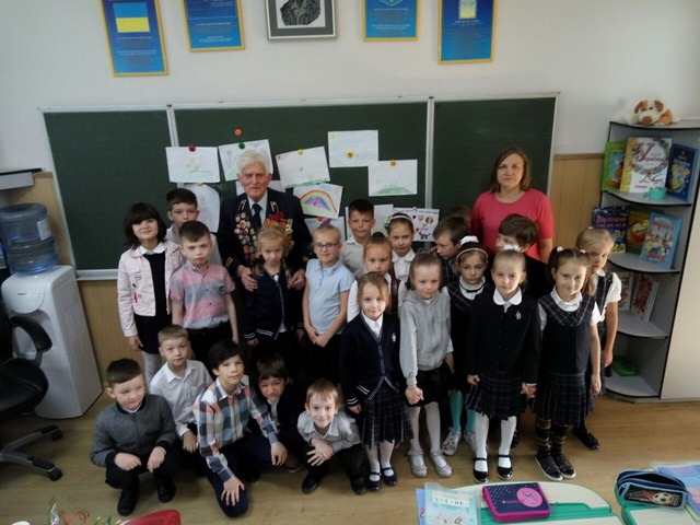 08 травня 2018 року до Дня пам’яті та примирення для гімназистів 1-Б класу, класовод Петровська І.М, відбулася незабутня зустріч з учасником бойових дій, інвалідом Вітчизняної війни 1941-1945 рр. Миколою Трохимовичем Куриленком. Він почесний ветеран України, почесний працівник метрополітену, машиніст електропоїзда і перший завідувач Музею історії Київського метрополітену, пенсіонер, член Асоціації працівників музеїв технічного профілю України. Малеча із захопленням слухала розповідь про страшні події війни, які прадідусь гімназистки Куреленко Маргарити розповідав у віршованій формі.