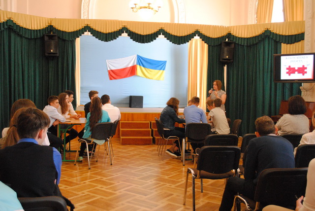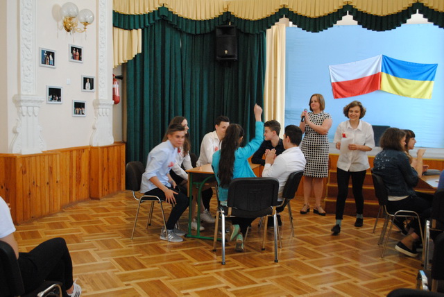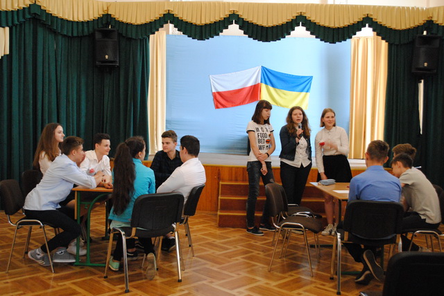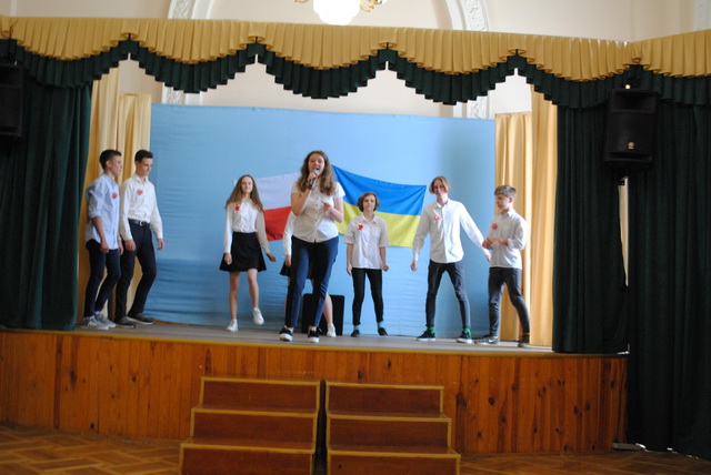 16 травня 2018 року в актовій залі збірна команда 8-9 класів "Польські друзі" представила свій виступ, присвячений Польщі, з яким вони вибороли ІІІ місце в районному конкурсі-фестивалі "Діалог держав: партнерство в освіті".Після виступу гімназисти 8-А і 8-Б взяли участь в брейн-ринзі "A co ty wiesz o Polsce?", де відповідали на питання про історію, культуру та традиції поляків.
