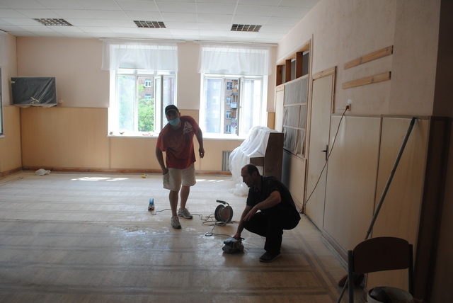 Учителі разом з батьками із задоволенням проводять ремонтні роботи, щоб вчасно зустріти гімназійну родину в оновлених приміщеннях.