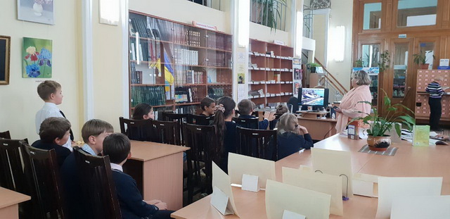 27 вересня 2018 року вихованці 4-х класів ГПД гімназії №48 на чолі з вихователем Лаврентьєвою Г.О. відвідали інтерактивне заняття-гру «Лабіринтами бібліотеки» на базі бібліотеки ім. Є. Плужника. Співробітник бібліотеки В.О. Вавілова познайомила з експозицією та книгосховищем, діти мали можливість подивитися та обговорити фільм «Незвичайні бібліотеки світу».