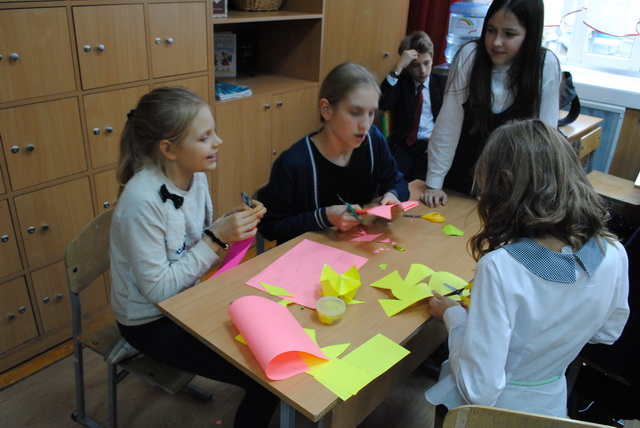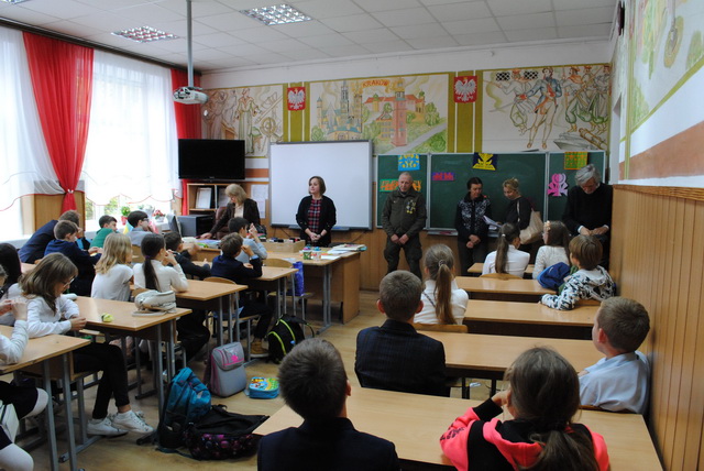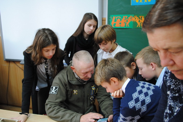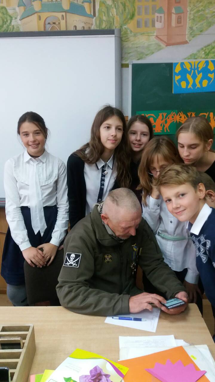 09 жовтня 2018 року в гімназії №48, в рамках проекту "Оберіг"гімназисти 6-Б класу взяли участь в майстер-класі "Витинанка", організатором якого стала громадська організація Всеукраїнське товариство "Просвіта". На зустрічі був присутній боєць розвідувально-диверсійної роти окремого штурмового батальйону "Айдар" з позивним "Їжак". Діти підготували вітання воїнам до Дня Захисника України- малюнки, витинанки та листи-поздоровлення, які будуть передані військовими капеланами воїнам-захисникам.