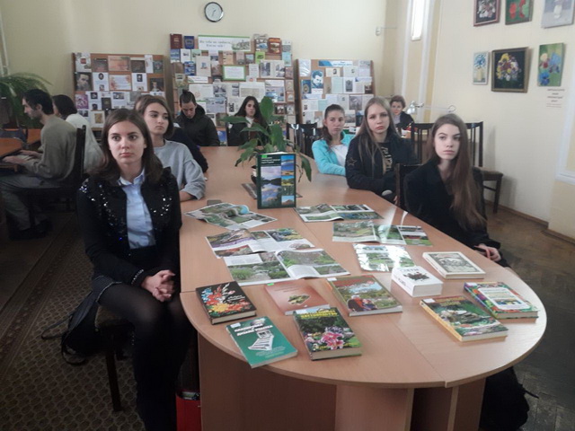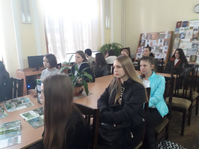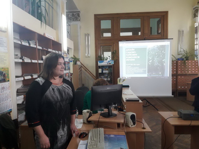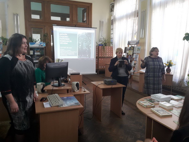 10 жовтня 2018 року гімназисти 11-А класу на чолі з заступником директора з виховної роботи Чистяк О.І. провели урок художньої культури за темою «Ландшафт і місто. Дизайн садово-паркових ансамблів світу. Ландшафтні композиції України» за участю доцента кафедри дизайну архітектурного середовища КНУБА Щурової Вікторії, яка провела профорієнтаційну бесіду щодо вступу на спеціальності архітектурного факультету КНУБА на базі бібліотеки ім. Є. Плужника.