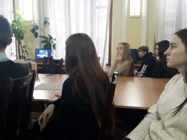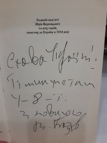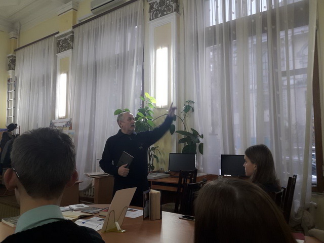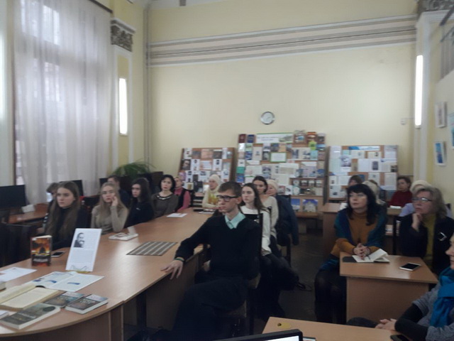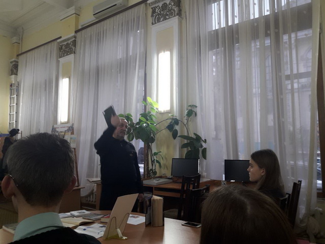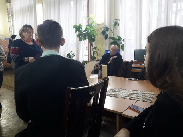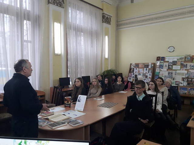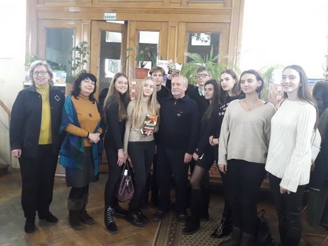 21 листопада 2018 року гімназисти 11-А класу на чолі з заступником директора з виховної роботи Чистяк О.І. та завідуючою бібліотеки Чумак Т.Л. на базі бібліотеки імені Є. Плужника мали можливість обговорити події революції Гідності з автором роману-реквієму «Армагеддон на Майдані»,письменником та дипломатом Василем Базівом, який написав свій роман у березні 2014 року, коли ще стояли барикади у центрі Києва і ще не зійшла кров полеглих на бруківці. Прототипом головного героя став один із перших великомучеників із «Небесної сотні» Юрій Вербицький. В основу сюжету ліг авторський документальний фільм «Кримінальна окупація», який підчас Революції Гідності зібрав на Ютубі понад мільйон переглядів, а також десятки разів демонструвався зі сцени у буремні дні Повстання.