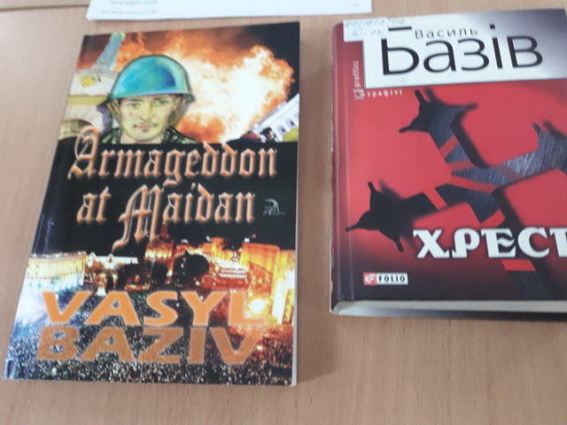 Роман був визнаний кращим художнім твором про всенародний подвиг, і його тираж рішенням Міністерства культури поповнив книгозбірні бібліотек по усій Україні. Гімназисти жваво спілкувалися з Василем Базівом та мали можливість придбати його книжки. Роман «Армагеддоон на Майдані»з підписом автора поповнив фонд бібліотеки гімназії №48.