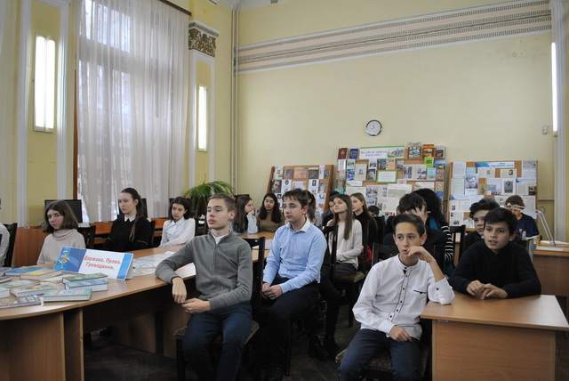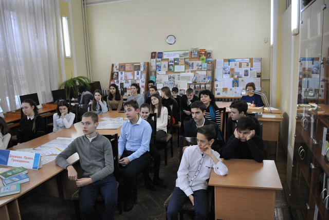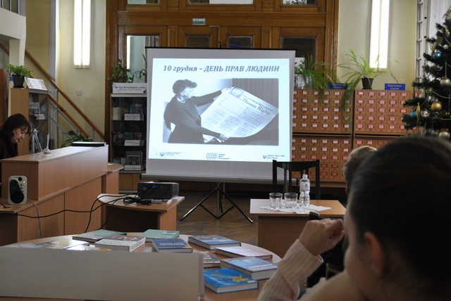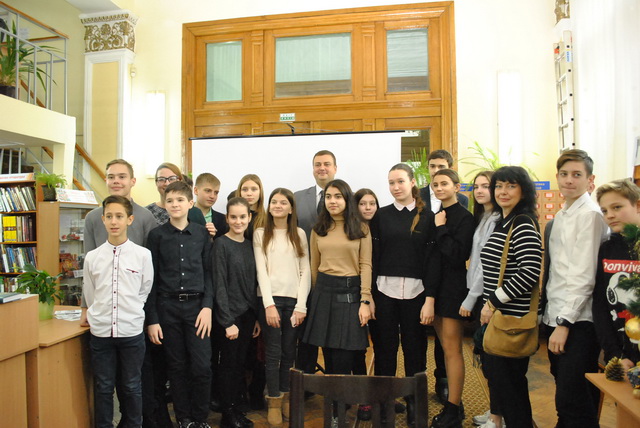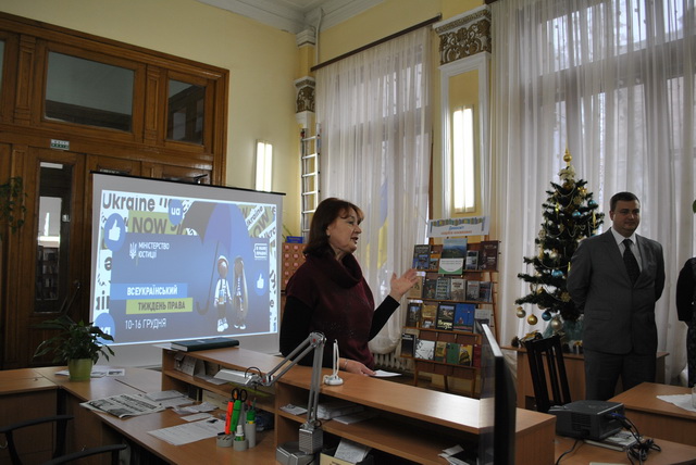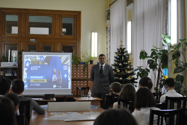 12 грудня 2018 року в рамках Всеукраїнського тижня права гімназисти 8-А класу на чолі з заступником директора з виховної роботи Чистяк О.І відвідали інтерактивне заняття «Права людини. Декларація прав людини» на базі бібліотеки ім. Є Плужника. Учні з цікавістю спілкувалися з заступником начальника Управління-начальником відділу систематизації законодавства, правової роботи та правової освіти - Хименком Олександром Анатолійовичем та провідним спеціалістом відділу систематизації законодавства, правової роботи та правової освіти Управління державної реєстрації нормативно - правових актів, правової роботи та правової освіти- Гарбузенко Кариною Анатоліївною. Ця зустріч сприяла розширенню та збагаченню знань з правової освіти, закріпленню прав та свобод дитини, умінню застосовувати їх на практиці.