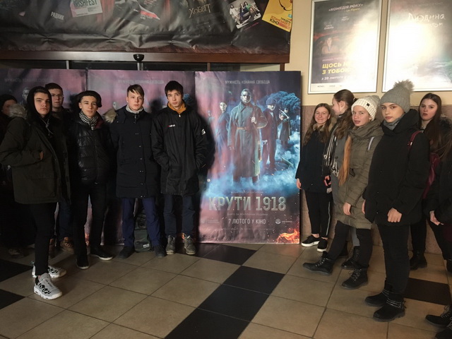 21 лютого 2019 року гімназисти 10-А класу разом з учителем історії Червінською Н.М. відвідали «прем’єрний» показ кінофільму «Крути 1918», присвячений 100-річчю героїчного подвигу української молоді.