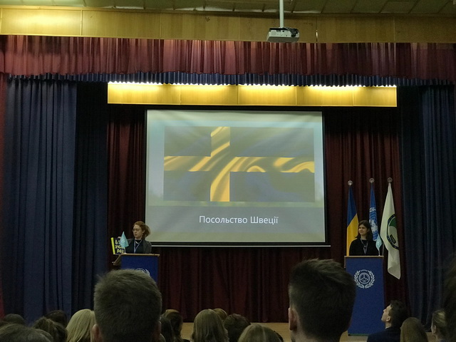 Наші делегати у складі: посла – Іовенко Маріанни (Рада з прав людини, Французька Республіка, 11-А клас), делегатів Коломієць Катерини (Рада безпеки, Держава Кувейт, 11-Б клас), Шеремок Анастасії (Всесвітня Продовольча Програма, Французька Республіка, 10-Б клас), Пєтухової Єлизавети (Комітет ООН з використання космічного простору в мирних цілях, Французька Республіка, 10-Б клас), Лисюк Діани (Економічна та Соціальна Рада, Французька Республіка, 10-Б клас) та Павленко Єлизавети (Дитячий фонд ООН (ЮНІСЕФ), Французька Республіка, 9-А клас) показали високий рівень підготовки та довели, що наші гімназисти гідні бути хорошими дипломатами.